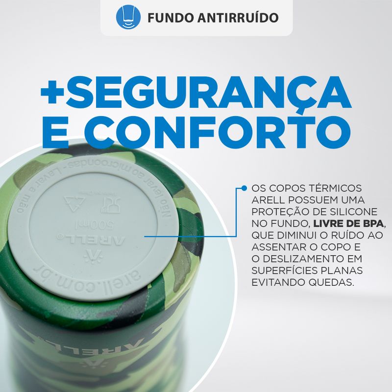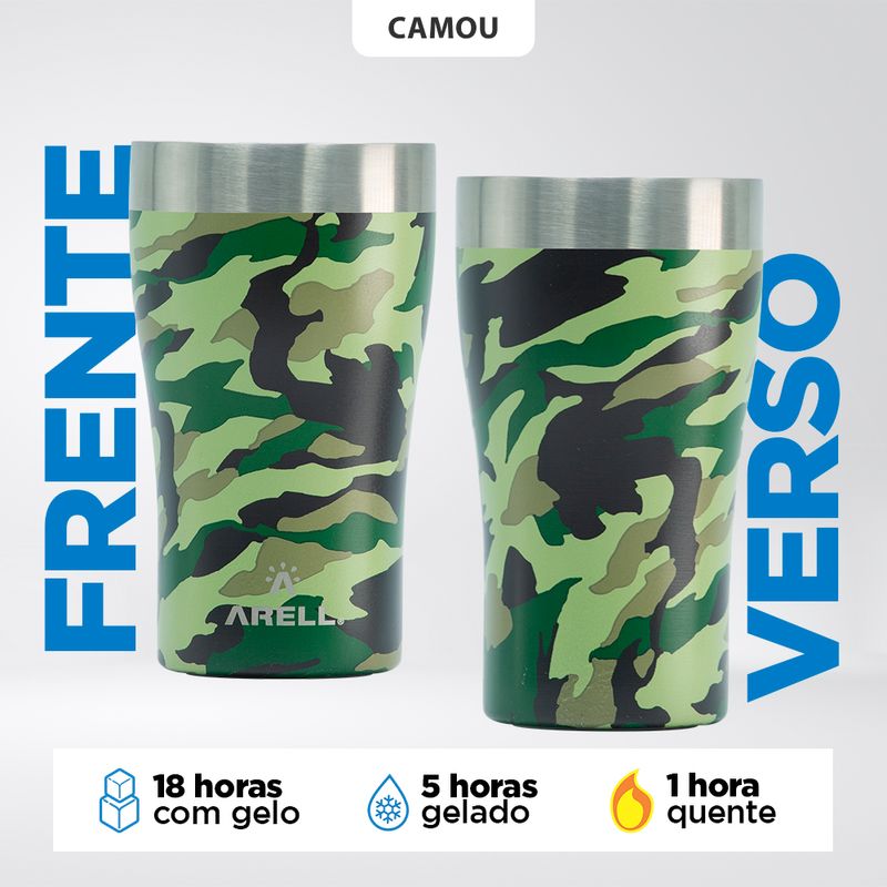 Copo Térmico Arell Inox a Vácuo 500ml Camou Sem Tampa