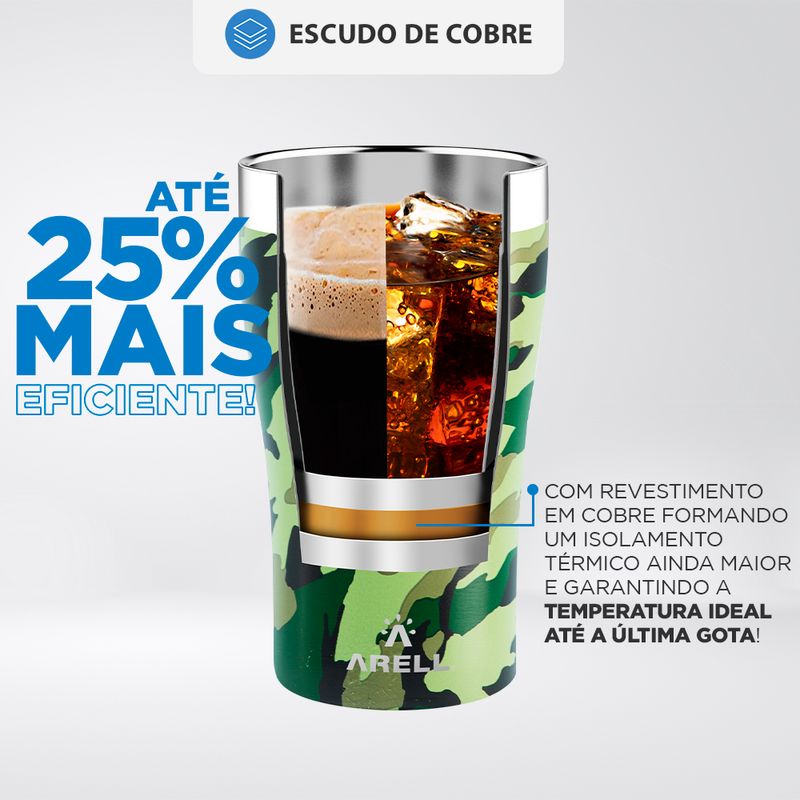 <p><font face="Helvetica"><span style="font-size: 14px;"><b>TECNOLOGIA</b></span></font></p><p><font face="Helvetica"><span style="font-size: 14px;">Os copos térmicos Arell são feitos com parede dupla de aço inox 304 usando a tecnologia de isolamento a vácuo. Isso significa que o espaço entre as paredes de aço inoxidável é absolutamente vazio, diminuindo a transferência de calor em torno de todo o copo. Isso faz com que a temperatura da sua bebida seja muito menos afetada pela temperatura fora do copo. Assim, você pode aproveitar a sua bebida gelada ou quente por muito mais tempo.</span></font></p><p><font face="Helvetica"><span style="font-size: 14px;">- Até 18 horas com gelo</span></font></p><p><font face="Helvetica"><span style="font-size: 14px;">- Até 5 horas gelado</span></font></p><p><font face="Helvetica"><span style="font-size: 14px;">- Até 1 hora quente</span></font></p><p><font face="Helvetica"><br></font></p><p><font face="Helvetica"><span style="font-size: 14px;"><b>ESCUDO DE COBRE</b></span></font></p><p><font face="Helvetica"><span style="font-size: 14px;">Os copos Arell contam também como uma camada extra de isolamento térmico. Eles possuem um revestimento de cobre na parede exterior da parte interna formando um isolamento ainda maior. O cobre reduz a troca de temperatura e isso faz com que nossos copos tenham uma eficiência de até 25% a mais do que qualquer outra marca do mercado.&nbsp;</span></font></p><p><font face="Helvetica"><br></font></p><p><font face="Helvetica"><span style="font-size: 14px;"><b>CORES</b></span></font></p><p><font face="Helvetica"><span style="font-size: 14px;">A Arell inova o mercado Brasileiro trazendo 8 lindas cores que agradam a todos os estilos e idades. As cores desempenham um papel fundamental em nossas vidas e são capazes de afetar nossas emoções e humor de maneira que poucas outras coisas podem. Escolha a sua cor favorita e desfrute sua bebida gelada ou quente por horas.</span></font></p><p><font face="Helvetica"><br></font></p><p><font face="Helvetica"><span style="font-size: 14px;"><b>FUNDO EMBORRACHADO ANTI-RUÍDO</b></span></font></p><p><font face="Helvetica"><span style="font-size: 14px;">Os nossos copos vem com uma proteção de silicone no fundo que é livre de BPA, diminui o ruído ao assentar o copo e o deslizamento em superfícies planas evitando quedas.&nbsp;</span></font></p><p><font face="Helvetica"><br></font></p><p><font face="Helvetica"><span style="font-size: 14px;"><b>TULIP PINT DESIGN</b></span></font></p><p><font face="Helvetica"><span style="font-size: 14px;">Com o pé mais fino e a boca mais aberta, nossa Tulip Pint ajuda na formação e retenção de espuma. Um clássico para tomar Pilsen, dirige os aromas de lúpulo direto para o nariz.</span></font></p><p><font face="Helvetica"><br></font></p><li class="li1" style="outline: 0px; color: rgb(23. 16. 22); font-family: Poppins;"><font face="Helvetica" style="outline: 0px;"><span class="