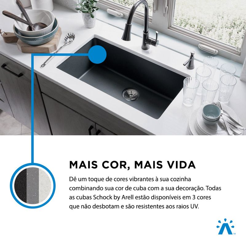 Cuba De Cozinha Em Quartzo Schock By Arell 101E - Gray Moon